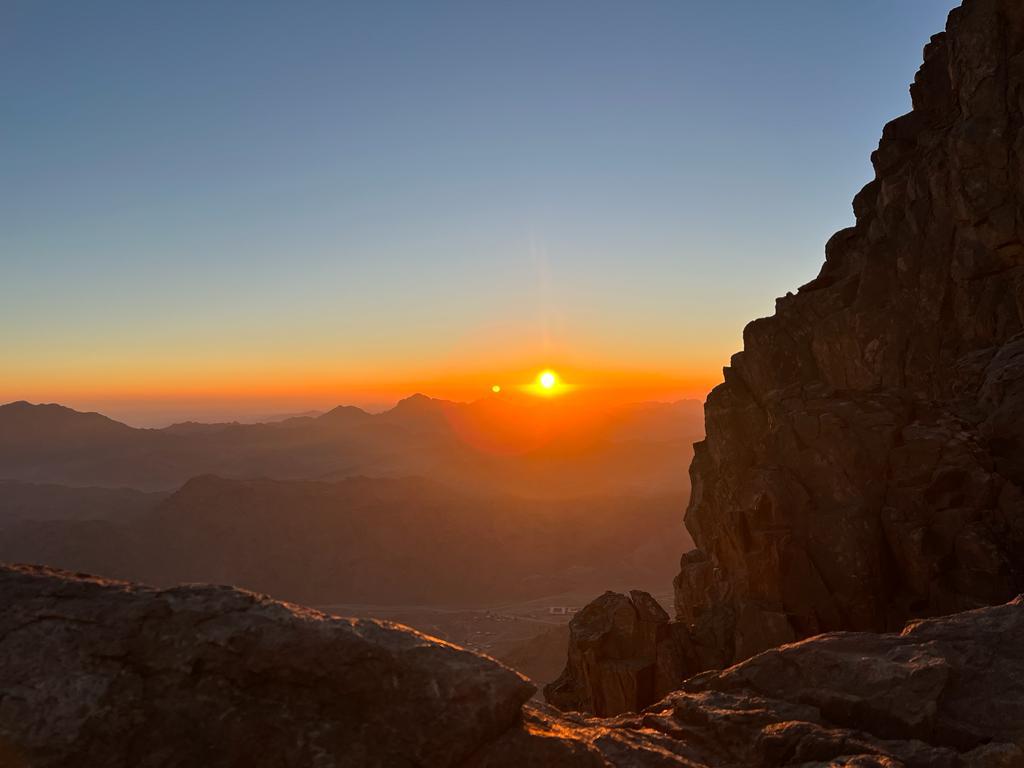 By now, you are here at one of the highest points in Egypt around 2,285 meters above sea level to enjoy the amazing view of Sun rising over the magnificent mountains around.
